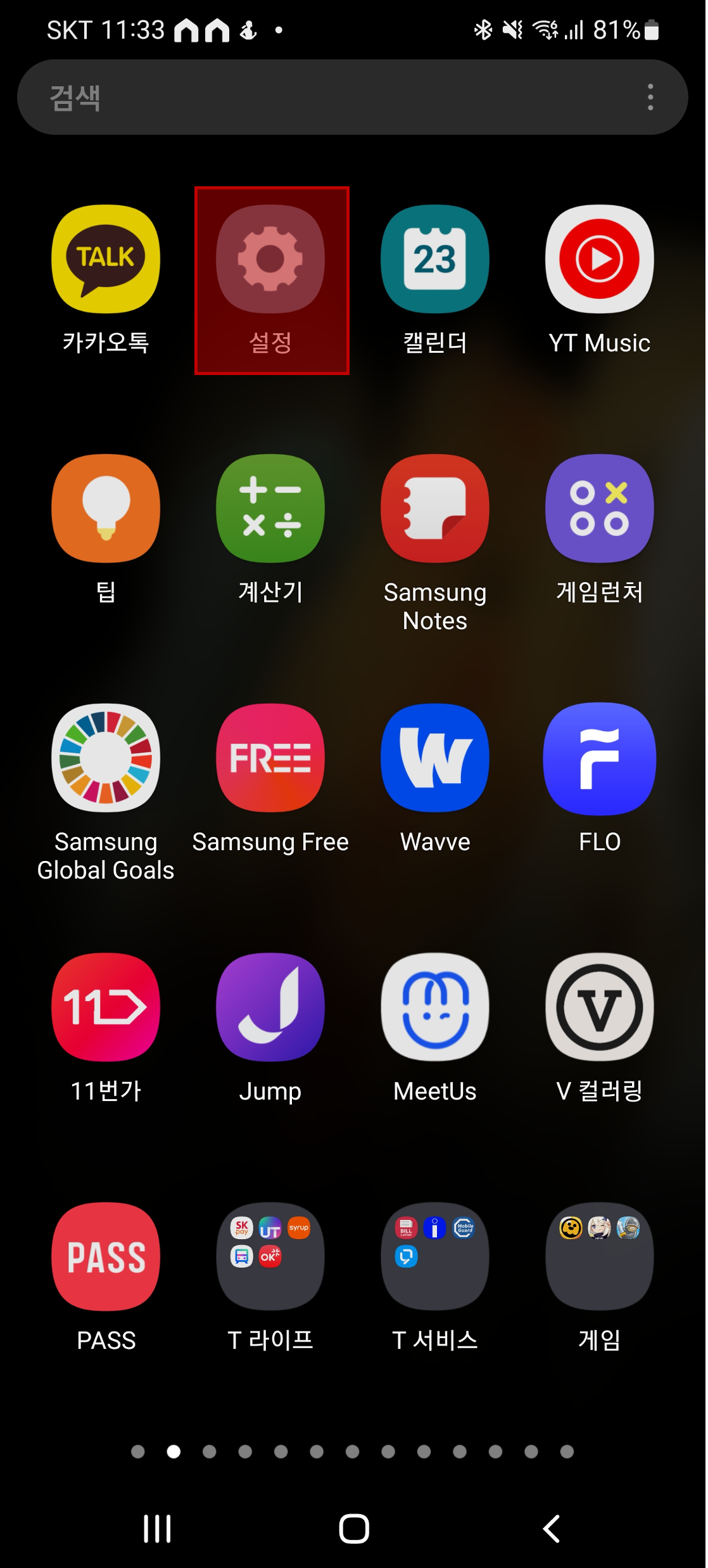 휴대폰 앱 전체 화면에서 설정을 선택합니다.