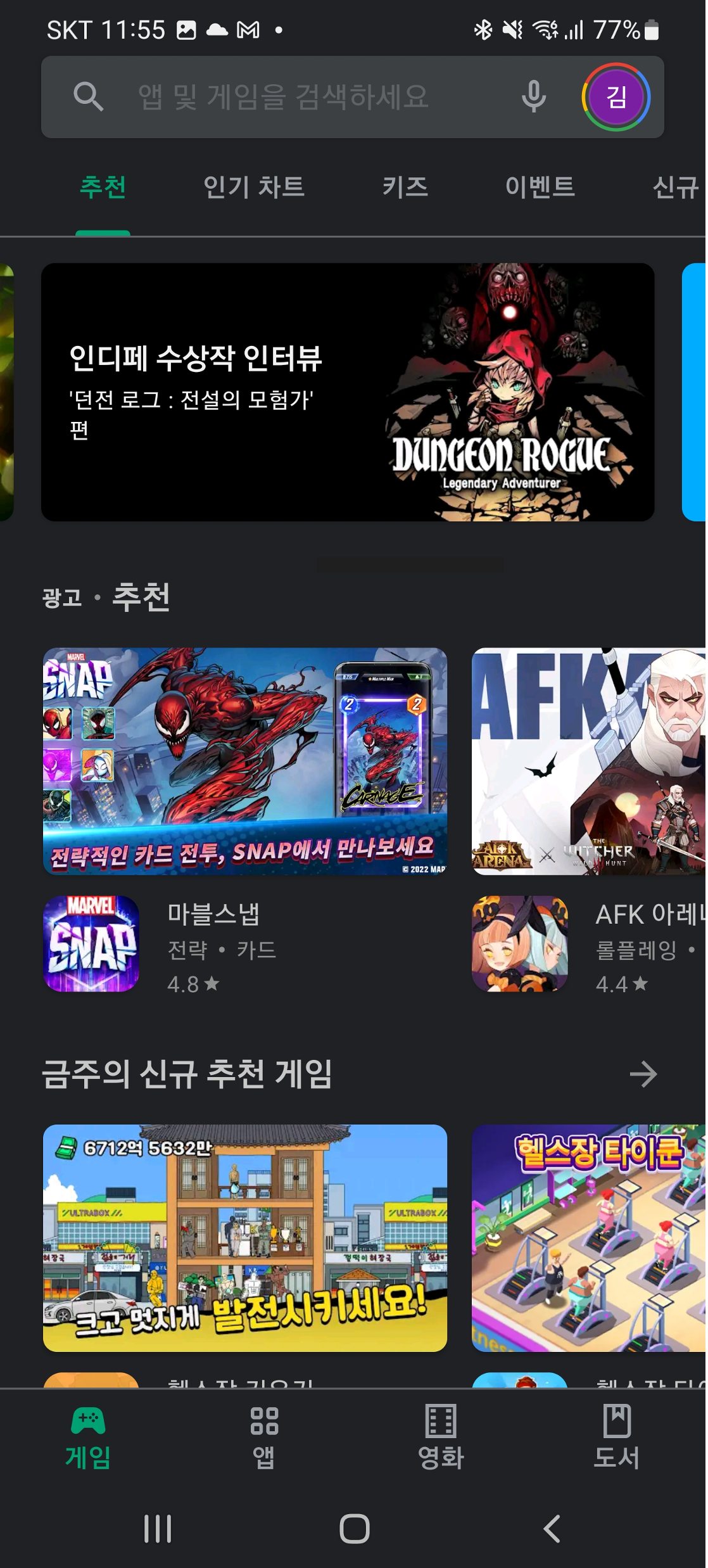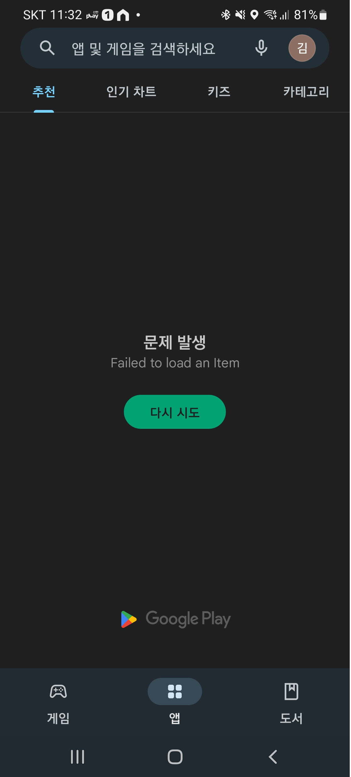 정상적인 구글 플레이스토어 화면이 나타납니다.