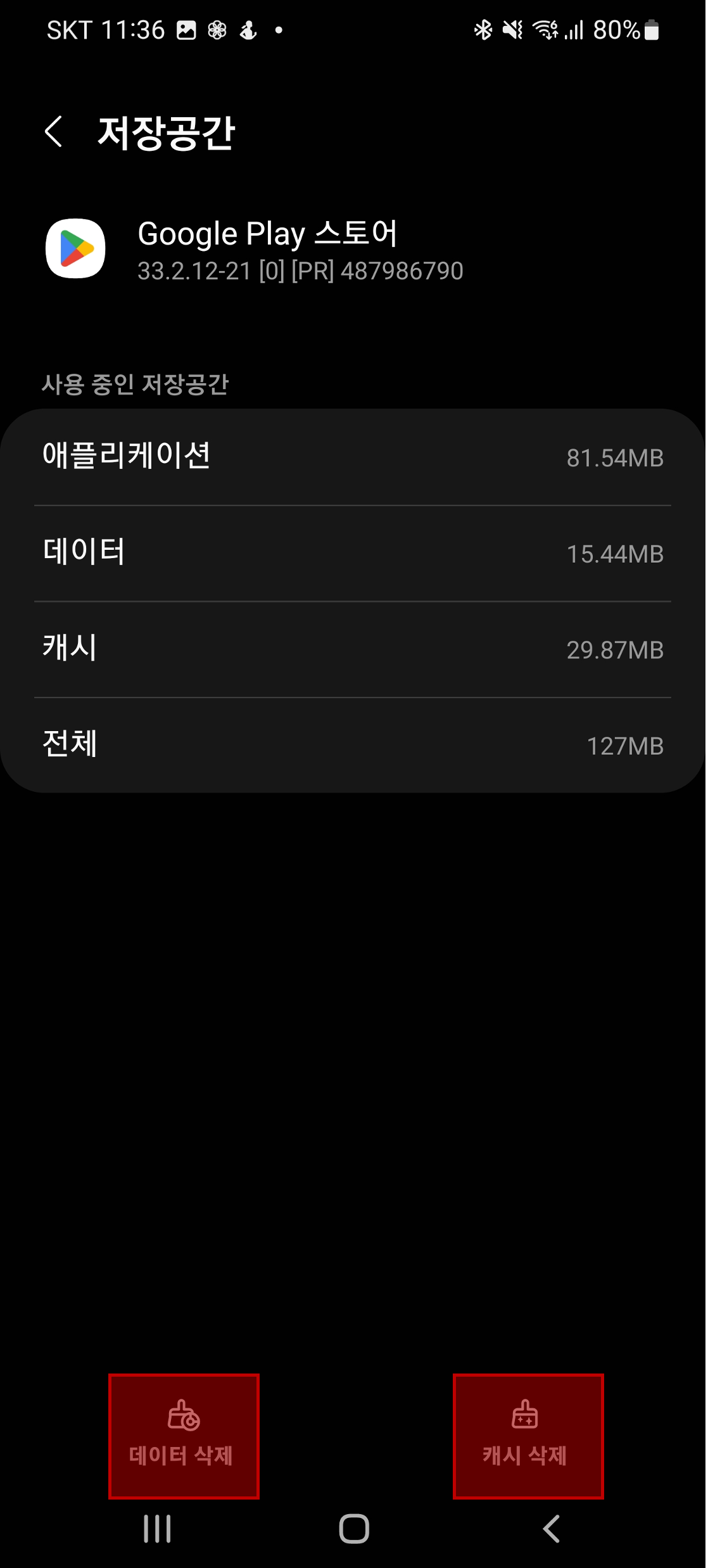 애플리케이션의 캐시 및 데이터를 삭제해줍니다.