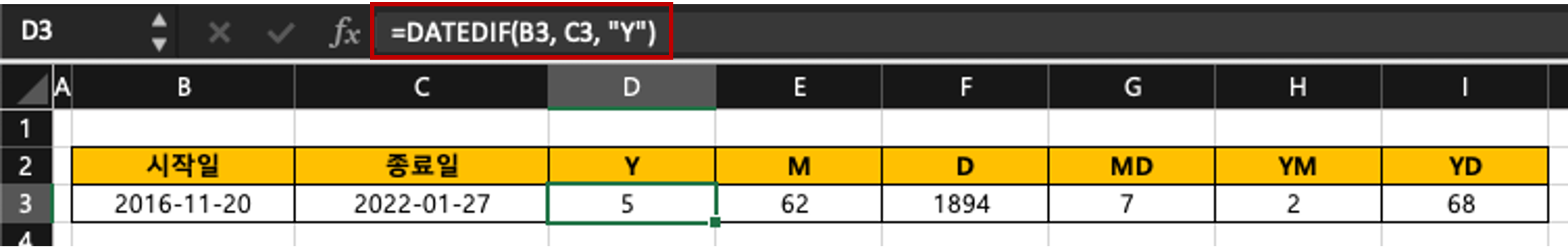DATEDIF 함수