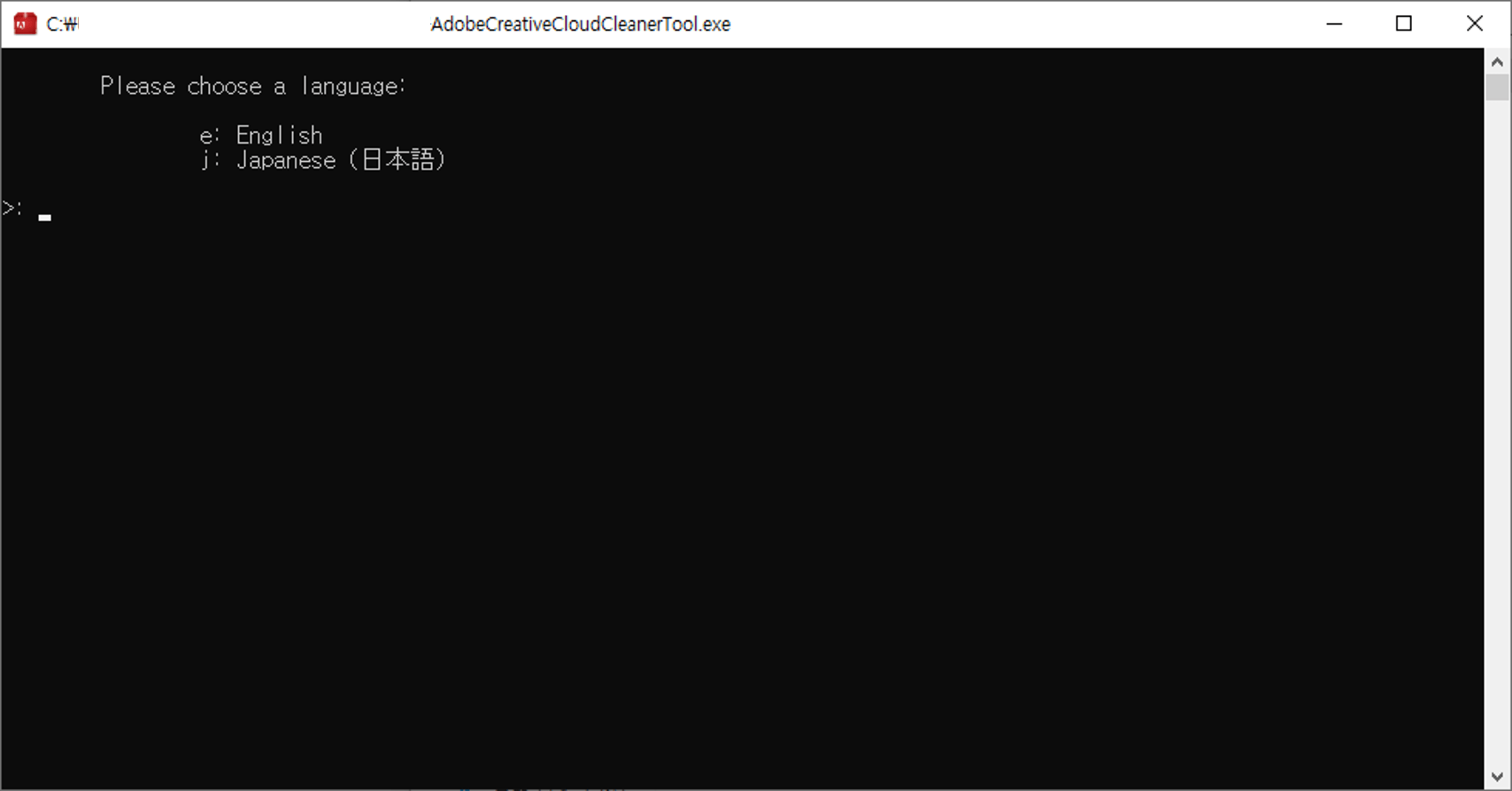삭제를 진행할 문구를 어떤 언어로 할지 선택하실 수 있습니다. 영어와 일본어를 제공하는데 영어는 e, 일본어는 j를 입력하고 엔터키를 누르면 다음 과정으로 이동합니다.