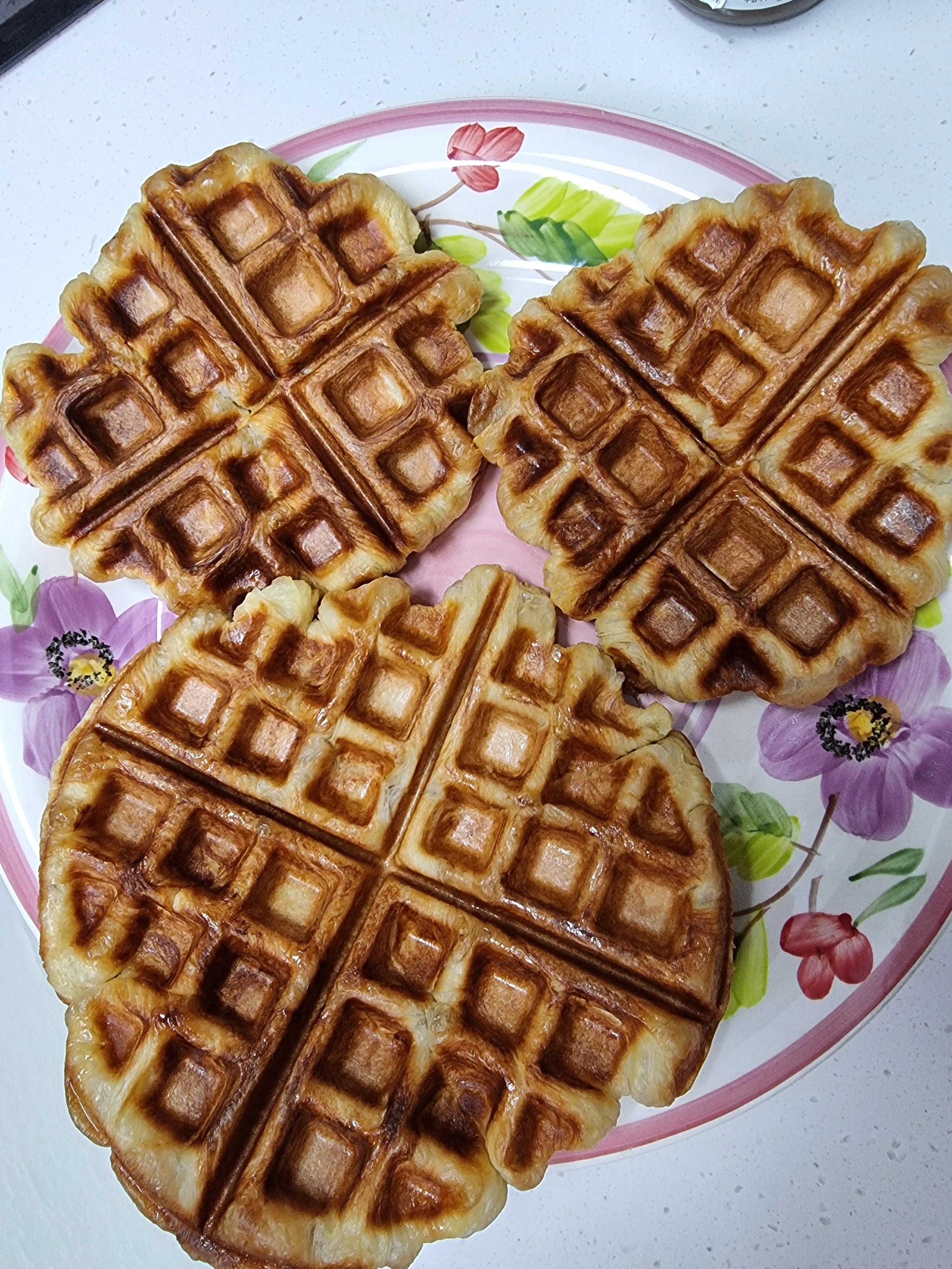 와플메이커를 이용해 만든 크로플의 완성작입니다! 정말 맛있어보이지 않나요?