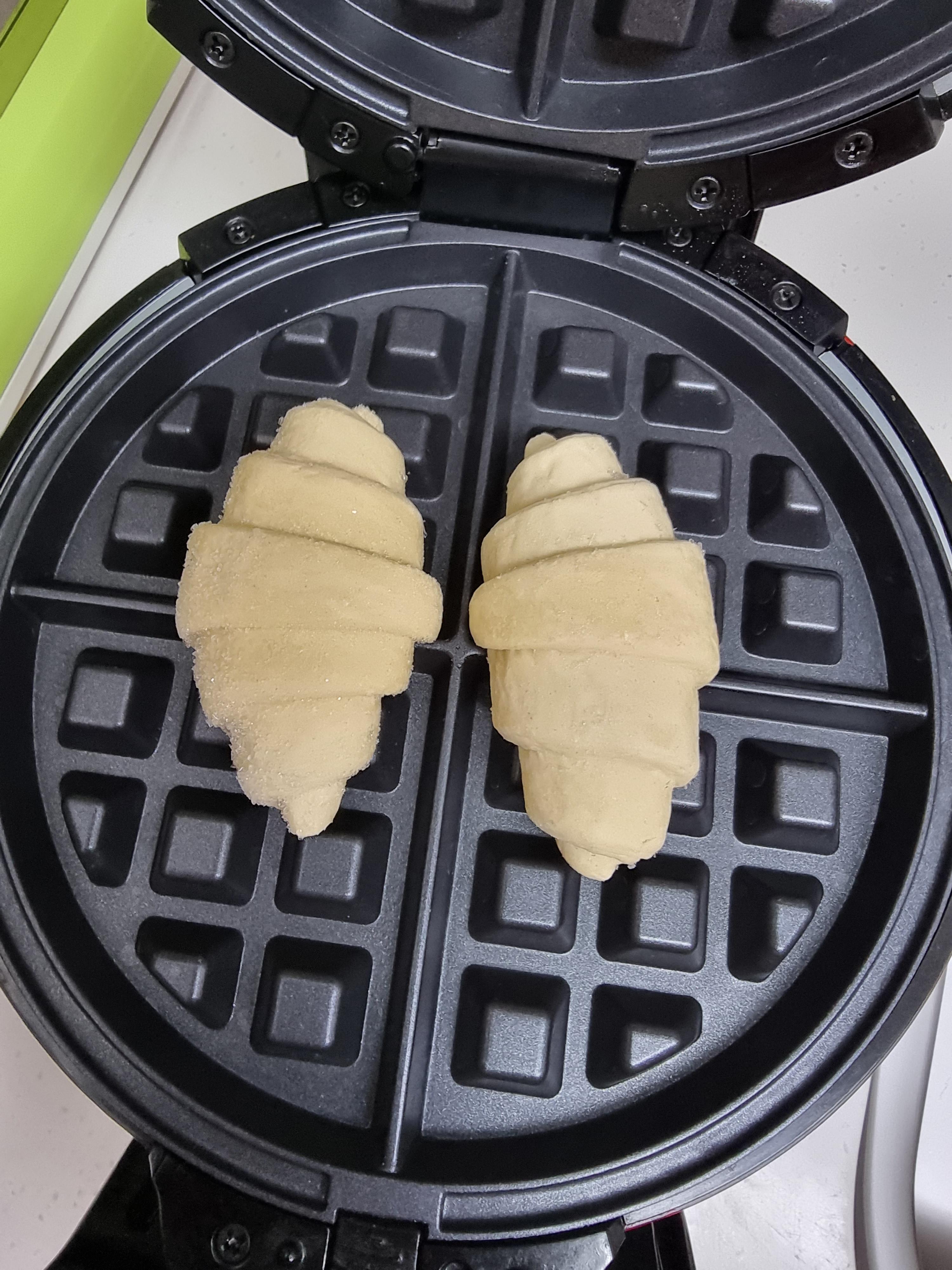 상단의 2개의 크로플은 크루아상 생지를 3개 넣어서 만들었고, 하단은 생지를 4개 넣어서 만든 크로플입니다.