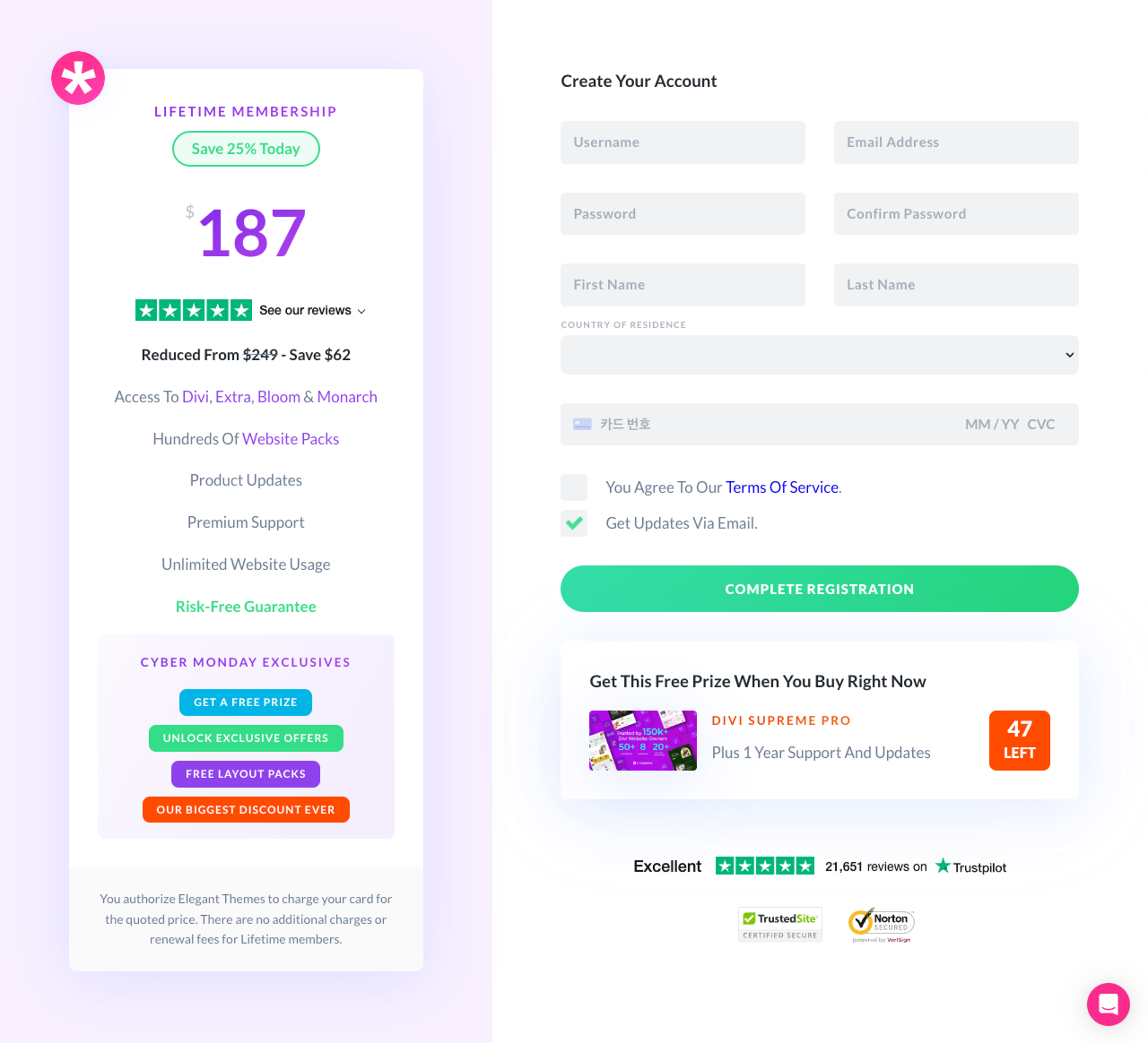 Divi LIFETIME MEMBERSHIP 가입