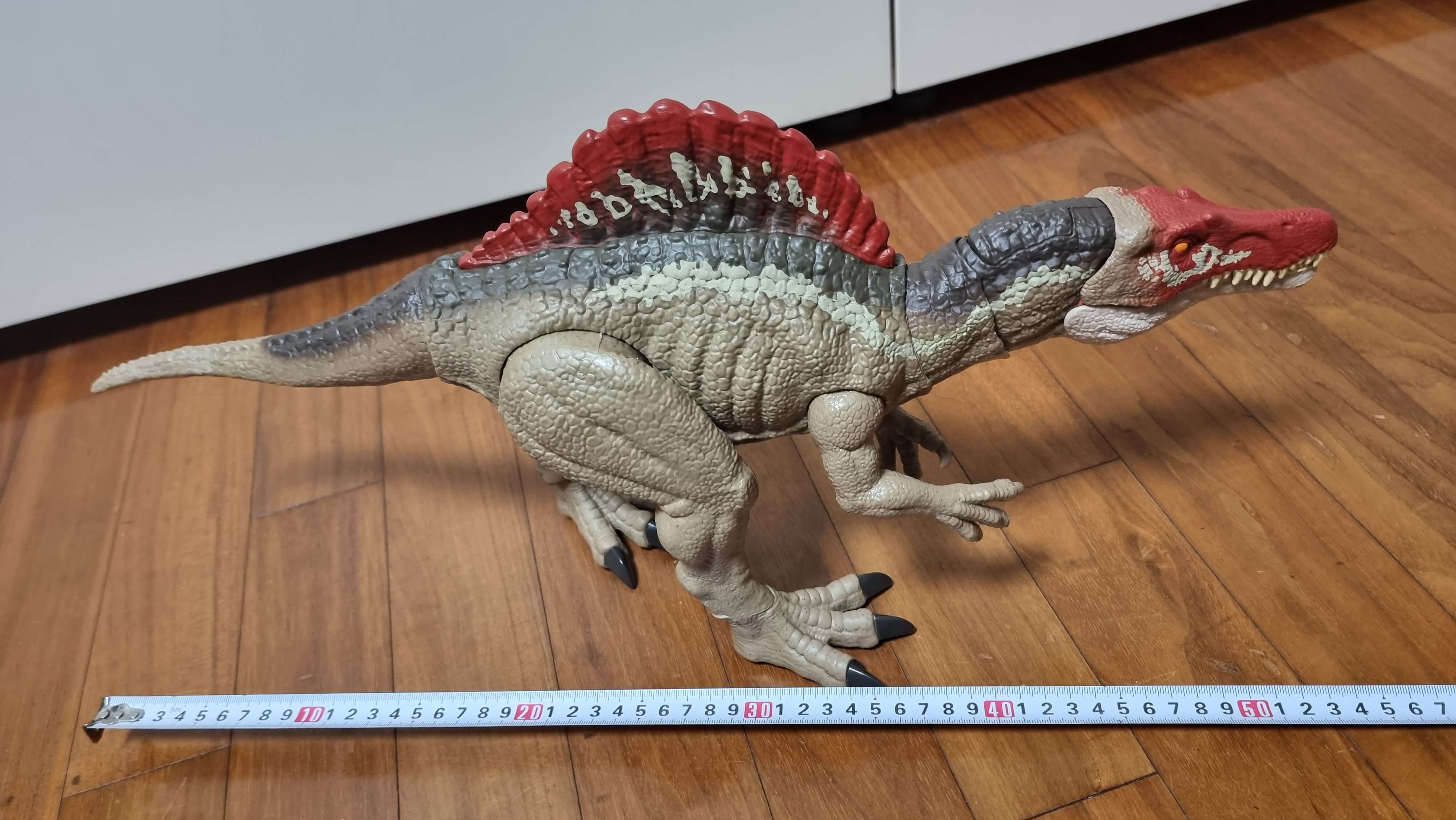이번에는 제품이 얼마나 큰지 알려드리기 위해 사이즈를 측정해보았습니다. 스피노사우루스의 가로 사이즈는 53cm 정도 됩니다.