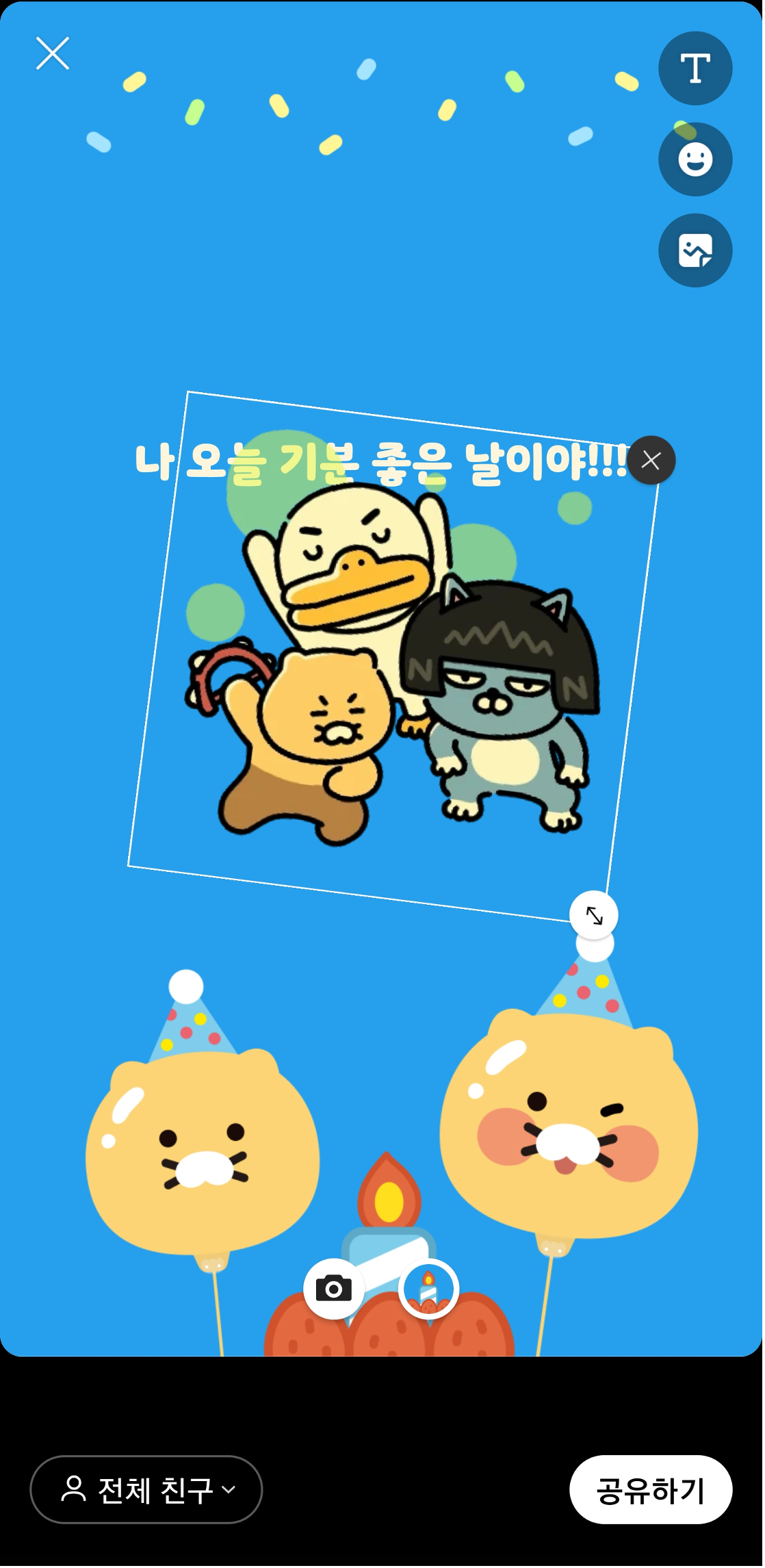 이모티콘을 회전하거나 크기 변경도 가능합니다.